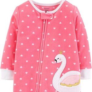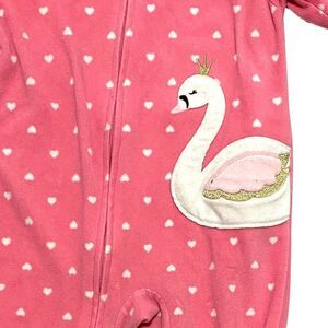 CARTER'S Baby Pink Fleece Swan One Piece Zip Up Footed Pj's