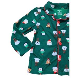CARTERS Christmas/Festive Santa Fleece 2 Piece Button Down Pyjamas Green Boys 4T