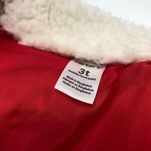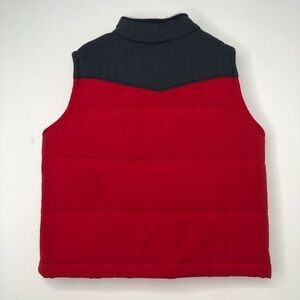 Carter’s lumberjack puffer vest in a solid red and textured grey color block. It has snaps along the front and two deep pockets. The collar is lined with a white cozy Sherpa material. Stay cozy and warm during the Fall and Winter with this puffy vest! In excellent like new condition with the only flaw being one scuff spot on the last snap (see photo of me pointing to it). See photos for measurements and details. Toddler boy’s size 3/3T.