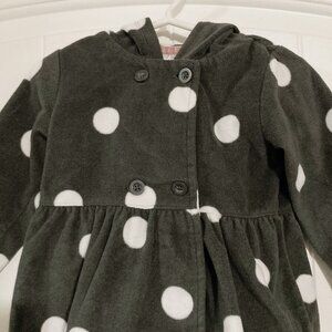 Cuter than a whole bucket of buttons, fabulously soft, and ideal for those not-too-hot, not-too-cold months, this darling toddler's size white & charcoal grey polka dot print fleece jacket - complete with precious little critter ears made from the same fabric on the hood - is such a gem of a garment! π₯°