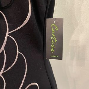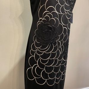 Gorgeously detailed with cutouts, appliqué and embroidery, this beautiful fitted dress by Canadian formalwear design house Cartise will effortlessly take you through all your formal events. She's fitted, lined with contrasting ivory and thick enough to skim over curves. The 3D elements take your eye on a delightful path across the body making this piece wonderfully flattering.