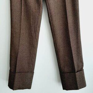 • Cropped pants in brown houndstooth pattern with cuff detail at the ankles.
