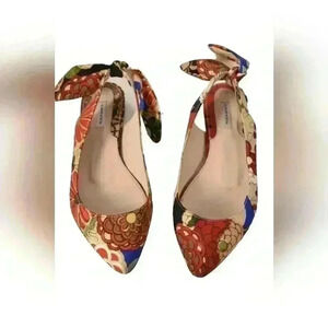 CARVEN Beige Red Multi Pointed Nylon Slingback Floral Riviera Flat 7.5US Italy