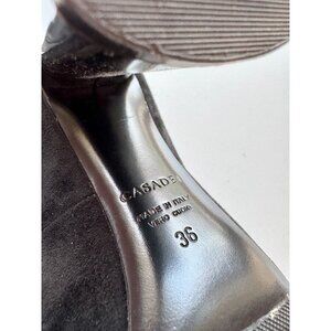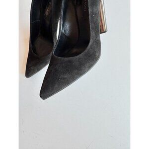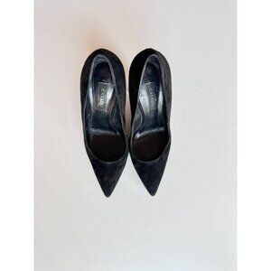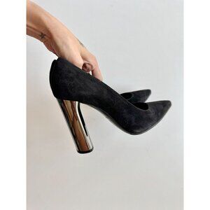 CASADEI Black Suede Leather Pointed Toe High Mirrored Block Heel Pumps, Size 36
