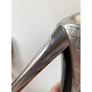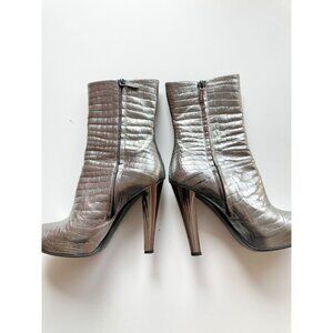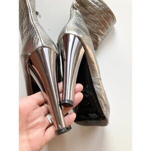 CASADEI Silver Croc-Embossed Leather Mid Calf Platform Mid Calf Boots, Size 6