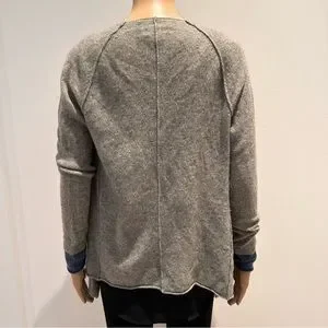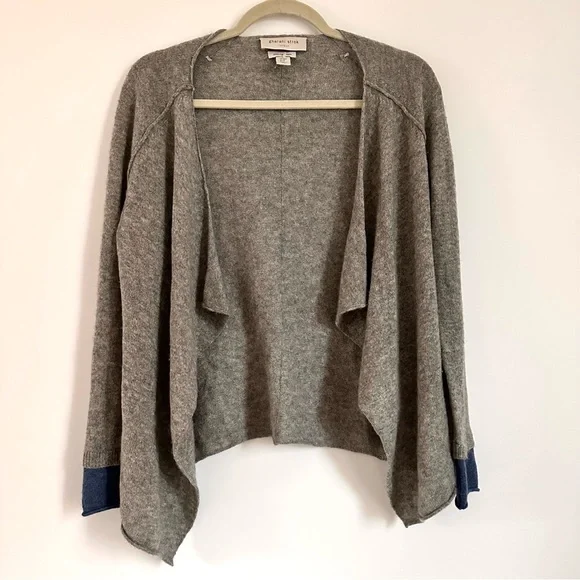 Beautifully soft and cozy, this open front cardigan is made from 100% pure cashmere. Features include exposed seams, rolled hems, and blue cuffs that add a pop of colour.