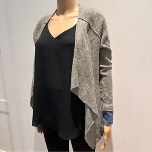 Gharani Strok 100% Cashmere Open Front Cardigan, grey, size medium.