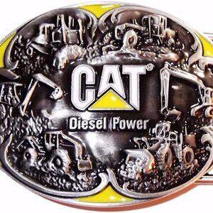 CAT (Caterpillar) Diesel Power Metal Yellow Enamel Belt Buckle NEW