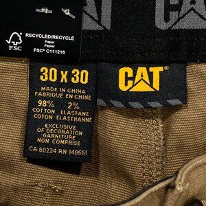 CAT Caterpillar Utility Work Pants Mens 30 x 30 Brown Flex Waistband Cell Pocket