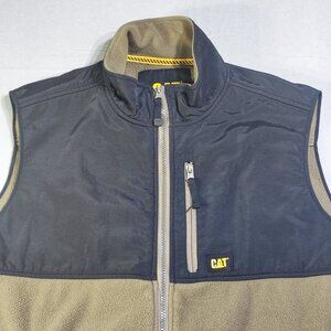 CAT Caterpillar fleece vest men's size L army green with black top zip pockets
