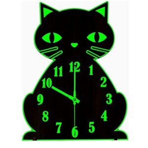 CAT WALL CLOCK NIGHT LIGHT - GLOW IN THE DARK