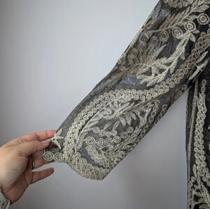 Add a touch of sophistication to your wardrobe with this sheer embroidered blouse from CATO (size Small).