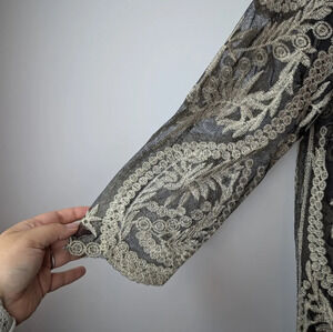 Add a touch of sophistication to your wardrobe with this sheer embroidered blouse from CATO (size Small).
