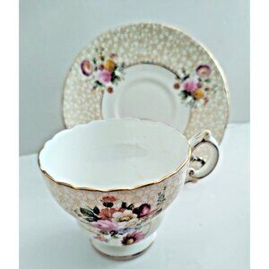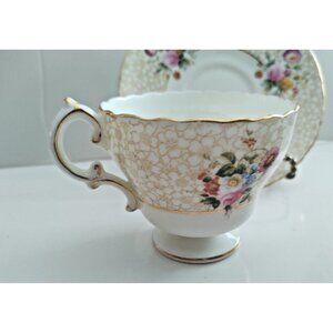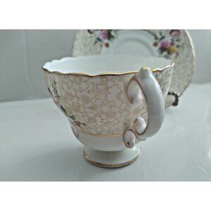 CAULDON tea cup and saucer floral painted rose chintz teacup England 1940s