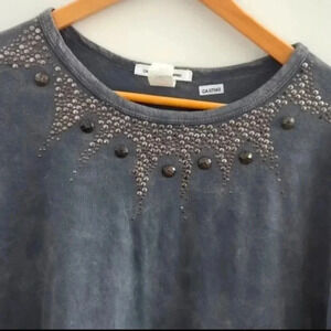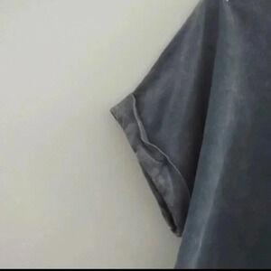 • Style: Grey acid wash with black jewels around neck, crewneck, rolled sleeves, oversized cropped