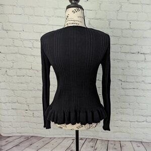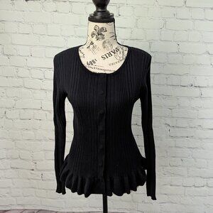 Black Ribbed Ruffle Cardigan sweater CABI Party cardi