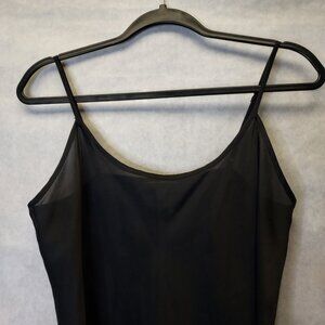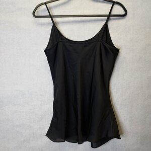 CAbi Camisole Top M Black Satin Sleeveless Tank Spaghetti Strap Tulip Hem #828
