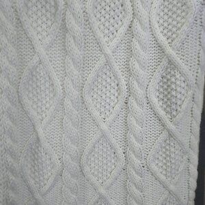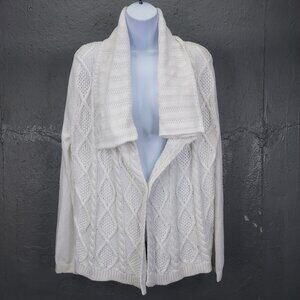 CAbi Cardigan Women Large White Cable Knit Open Shawl Collar Cotton Sweater #193