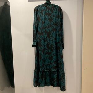 Deep Green and Black Duster, Dress and belt. Can be worn separately or together. The duster looks great with black slacks or jeans. Duster has black covered buttons, long sleeves.