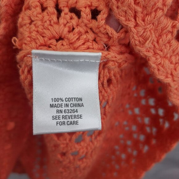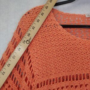 CB Est 1962 Tunic Women XL Orange Pullover Open Knit Crochet Long Sleeve CoverUp