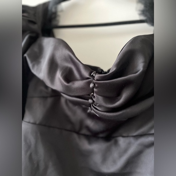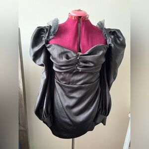 CB House Cherie Black Satin Puff Sleeve Dress (size L)