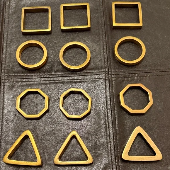 Elegant gold napkin rings. Features geometric shapes. Perfect for modern dining.