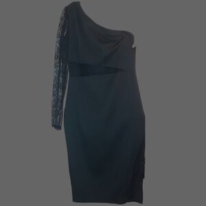 CBR Chic Boutique Rose Women's Black One Shoulder Lace Dress , size L