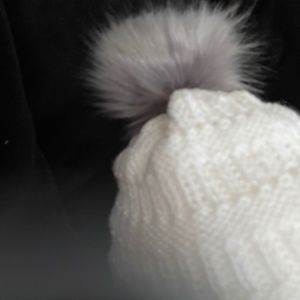 White 100% Acrylic Bernat Premium Wool with removable light Grey Faux Fur pompom