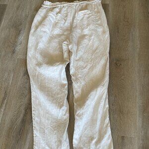 Reposhing this item I purchased from @katy_webber. Loved the pants but ready to rotate for something new. Comfy elasticized waist with some stretch.100% Linen. Loose fitting with two front pockets. Off white(Cream) in color. Size M. Excellent pre owned condition.