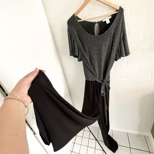 C&C California Silver and Black Stretch Wide Leg Jumpsuit