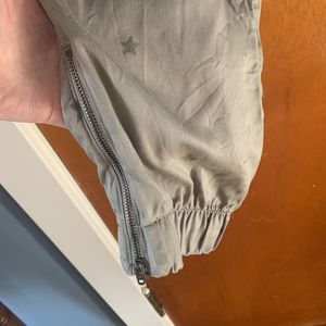 100% Lyocell Elastic waist with drawstring Front and back pockets Elasticized/zippered ankles