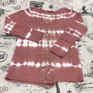 Cozy ribbed knit with tie dye stripe print updates this long sleeve T-shirt for a stylish wardrobe must-have.