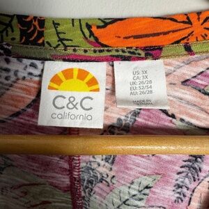 C&C California Women's Bright Safari Jungle 3/4 Sleeve T-Shirt Top 3X V-Neck