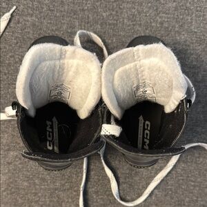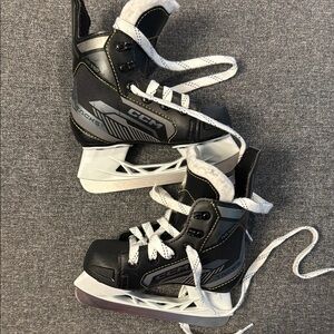 The perfect blend of style and comfort with these CCM Tacks Hockey Skates for your little one featuring a sleek black and gray design.