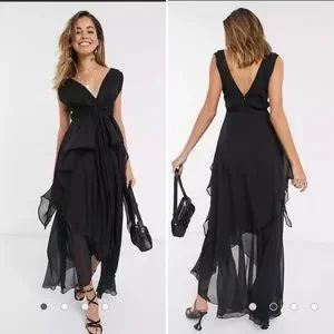 @mode_verite hi! It’s sleeveless. I put the fabric over the shoulder just for the picture. That fabric goes around the waist (ties around as the picture shows).