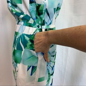 CECE by Cynthia Steffe tropical floral wrap romper blue green Sz 8 NWOT