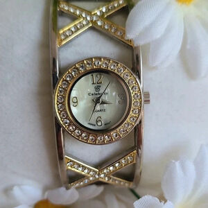 Gorgeous ladies bracelet watch. Gold and silver bracelet. Diamonds ornaments. Bracelet has jeweles X and O's (see video).