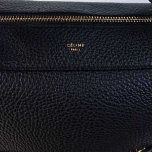 Céline Ring Bullhide black grained leather bag, gold-tone hardware, Comes with dust bag Phoebe Philo Collection.