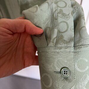 CELINE Silk Jacquard Tie Front Bow Blouse in Mint Size 34