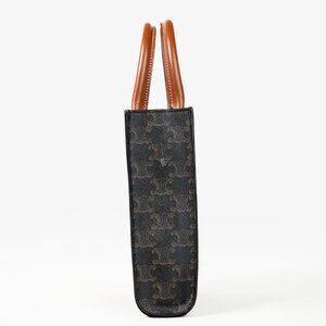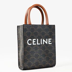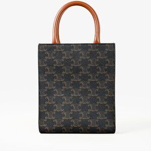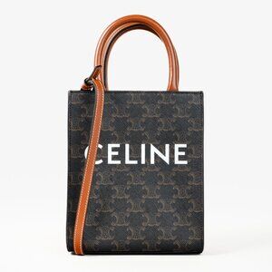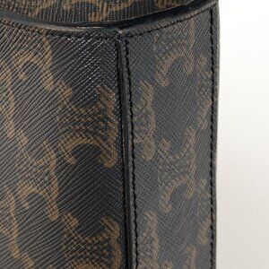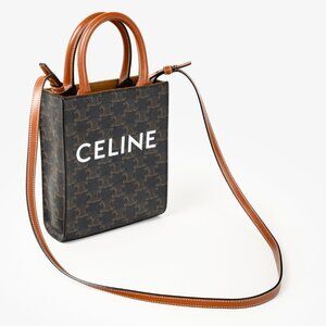 This small and adorable shoulder bag from CELINE features their signature triomphe canvas, trimmings in calfskin, textile lining, gold finishing, shoulder strap, and dual top handles.