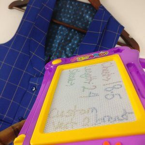 CEO Dress Shirt Double breasted Vest, Blue Checkered Vest, Formal Shirt Vest 36R