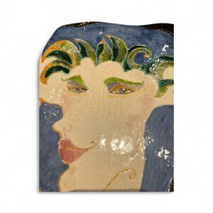 CERAMIC ART POTTERY Plaque Wall Hanging Jester Actor Costume Makeup 12" x 8"
