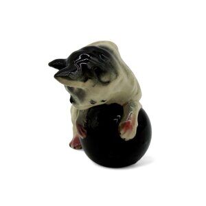 This vintage ceramic cat figurine captures the playful essence of a curious cat engaged with a ball, creating an endearing scene perfect for display.