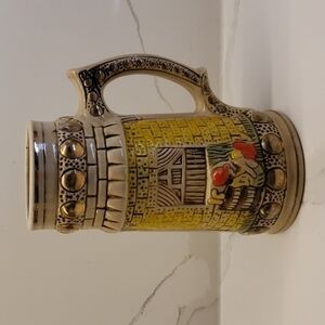 This beer stein is in good condition. Stain inside mug and small holes and stains throughout mug appear to be manufacture defects. This is design #121. See photos.