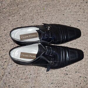 The Cesare Paciotti Black Leather/Buckle concept oxfords (model 28902) in size 7.5 US are a stylish and high-quality pair of dress shoes for men.
