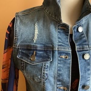 C'EST TOI Black Label Blue Distressed Denim Vest Size M