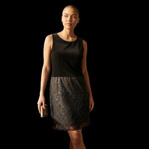 CH Carolina Herrera Black Velvet Lace Sequin Sheath Dress Sz 10 Cocktail Evening