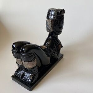 CHACMOOL Mesoamerican Obsidian Sculpture Gold Sheen and Applied Silver Detail