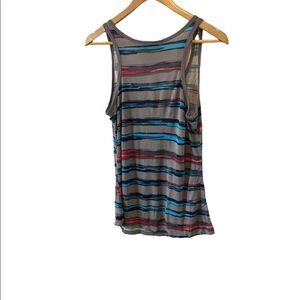 CHADO Grey Striped Lightweight Scoop Neck Loose Fit Casual Tank Top L