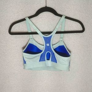 Racer back style sports bra, has a small spot on the inside of the support band.